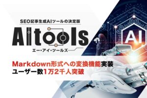 SEO特化のAIライティングツール「AItools」が、新たな「Markdown形式への変換機能」を正式リリースし、さらにユーザー数が1万2千人を突破しました。