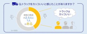 事前に行われた「トラックに関する意識調査」の結果によると、2.5人に1人が「トラックをカッコいいと感じたことがある」と回答。また、39.6%がトラックに「迫力がある」イメージを抱き、「役に立つ」39.0%、「頼もしい」25.0%などに回答が集まり、トラックの魅力が再認識されました。