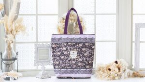 本商品は、爽やかなライラックカラーをベースに、ピンクやパープルで小花柄を描き、上下にあしらったレースプリントが上品な印象を放つ「大人可愛い」デザインです。保冷剤とともにチョコレート菓子を入れた場合、2~3時間ほどの持ち運びが可能で、日常生活にも最適なサイズ感です。
