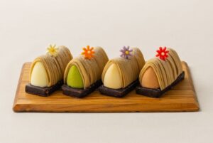 中島大祥堂の『かやぶき』は、モンブランクリームがたっぷり使われ、内部には甘さ控えめの生クリームとスポンジ、そしてチョコレートコーティングした玄米パフ入りメレンゲの土台が特徴です。今回、新たに抹茶~マンゴー&パッションフルーツ~、ジャスミン茶~オレンジ&ベルガモット~、ほうじ茶~アプリコット~の3種類のフレーバーが追加されます。