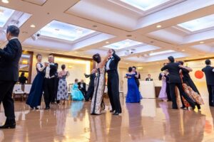 舞踏会はダンスを踊ることよりも参加者同士の交流を深める場の意味が大きいです。踊っているときはもちろん椅子に座っているときもドリンクコーナーで飲み物を飲まれるときにも参加者同士で楽しくお話をされてください。初めての方とも積極的にお話ししていただけると嬉しいです。そこからまた新しい交流が始まります。