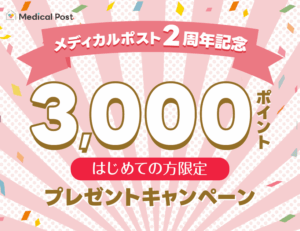 オンライン診療&処方サービス「メディカルポスト」が、2周年を記念し新規利用者に3000ポイントプレゼントキャンペーンを実施中です。