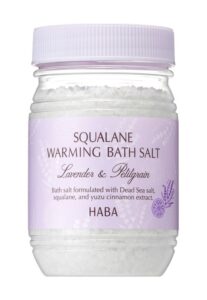 このバスソルトは、体を温めるホットゆずシナモンエキスとミネラル豊富な死海の塩を配合しています。この成分の配合により、体はしっかり温まり、発汗を促します。また、保湿成分セラミド3やスクワランも配合されており、入浴後は肌がしっとりと滑らかになります。