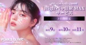 ボディ完成パッケージにお申込みのお客様が、Highペッ注射MAXの1部位施術を無償で受けられるという特別サービスを、韓国美容クリニックのPLANS CLINICが開催します。