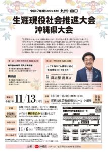 豊かな長寿社会のモデルになることを目指す「生涯現役社会」が、令和7年度 九州・山口 生涯現役社会推進大会 沖縄県大会として、2025年11月に開催されます。