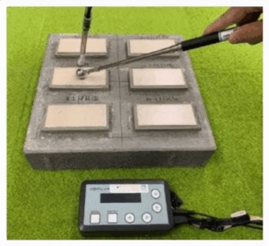 ハンマーによる試験体への打診