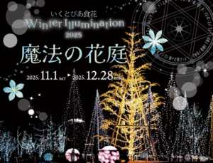 いくとぴあ食花はWinter Illumination 2025 -魔法の花庭-を11月1日(土)から開催いたします。冬の澄んだ空気に包まれた夜、光の花々が静かに咲き誇る幻想的な庭園が訪れる人々を夢の世界へと誘います。今年のテーマは「魔法の花庭」。イルミネーション期間限定のフォトスポットやキッチンカーも出店。こどもたちが作ったペットボトルランタンが光り輝くガーデンでは、点灯式やナイトマルシェ、しゃぼん玉ショーが開催されます。今年の冬は、いくとぴあ食花の光が紡ぐ魔法の物語を体験できる特別な空間をぜひお楽しみください。