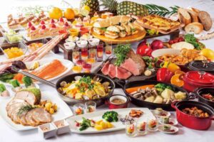 デザートコーナーでは、ホテルメイドのケーキや焼き立てワッフル、チョコレートファウンテンなど多彩なスイーツをご用意。ドリンクバーでは、月替わりのフレーバーティーを始め、ディナー限定のノンアルコールカクテルもお楽しみいただけます。