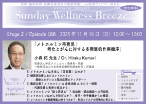 『メトホルミン再発見:老化とがんに対する多階層的作用機序』が、2025年11月16日(日)に、小森 拓先生(医療法人中京クリニカル / 理事長・院長)を講師にお迎えし、開催されます。