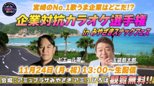 オフィスながも株式会社、「企業対抗カラオケ選手権」が、「スナックフェス2025 in 宮崎」とのコラボレーションを発表、2025年11月24日13時より生配信。