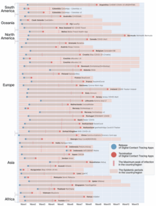 158か国・地域に跨る184のDCTアプリを調査。公開言語であるフランス語、アラビア語、ドイツ語、イタリア語、ポルトガル語、スペイン語を利用し、各アプリの運用状況と終了理由をオンライン調査した。さらに、各国の感染者数データ、ワクチン接種率データと比較を行った。結果として、運用終了したDCTアプリは45.7%であり、その背景として5つの理由が明らかとなった。