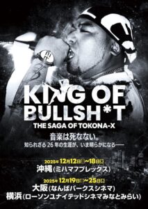 株式会社CTV MID ENJIN、日本のラップ業界に衝撃を与えた伝説のラッパー、TOKONA-Xの人生と音楽を描いたドキュメンタリー「KING OF BULLSH*T-THE SAGA OF TOKONA-X-」が12月12日(金)より沖縄、12月19日(金)より大阪、横浜にて1週間の限定上映が決定しました。
