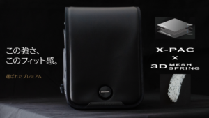 X-PACは、セイルクロス(ヨットの帆)で世界トップシェアを誇る米国DIMENSION-POLYANT社が開発した先進素材で、「表生地」「X-PLY(高強度ファイバー)」「裏生地」の3層を独自技術で一体化した構造を持ちます。