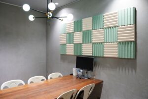 株式会社リブグラフィは、創業60年を越える工業用の防振ゴム、吸音材販売をしてきた経験を活かし、新たな製品として、デザインを加えた「REBORN PULP 吸音パネル」を製造・販売しています。