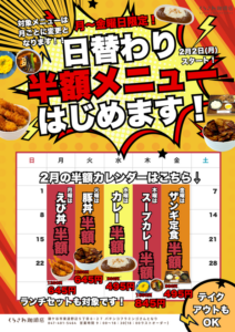 2月の日替わり半額メニュー▼