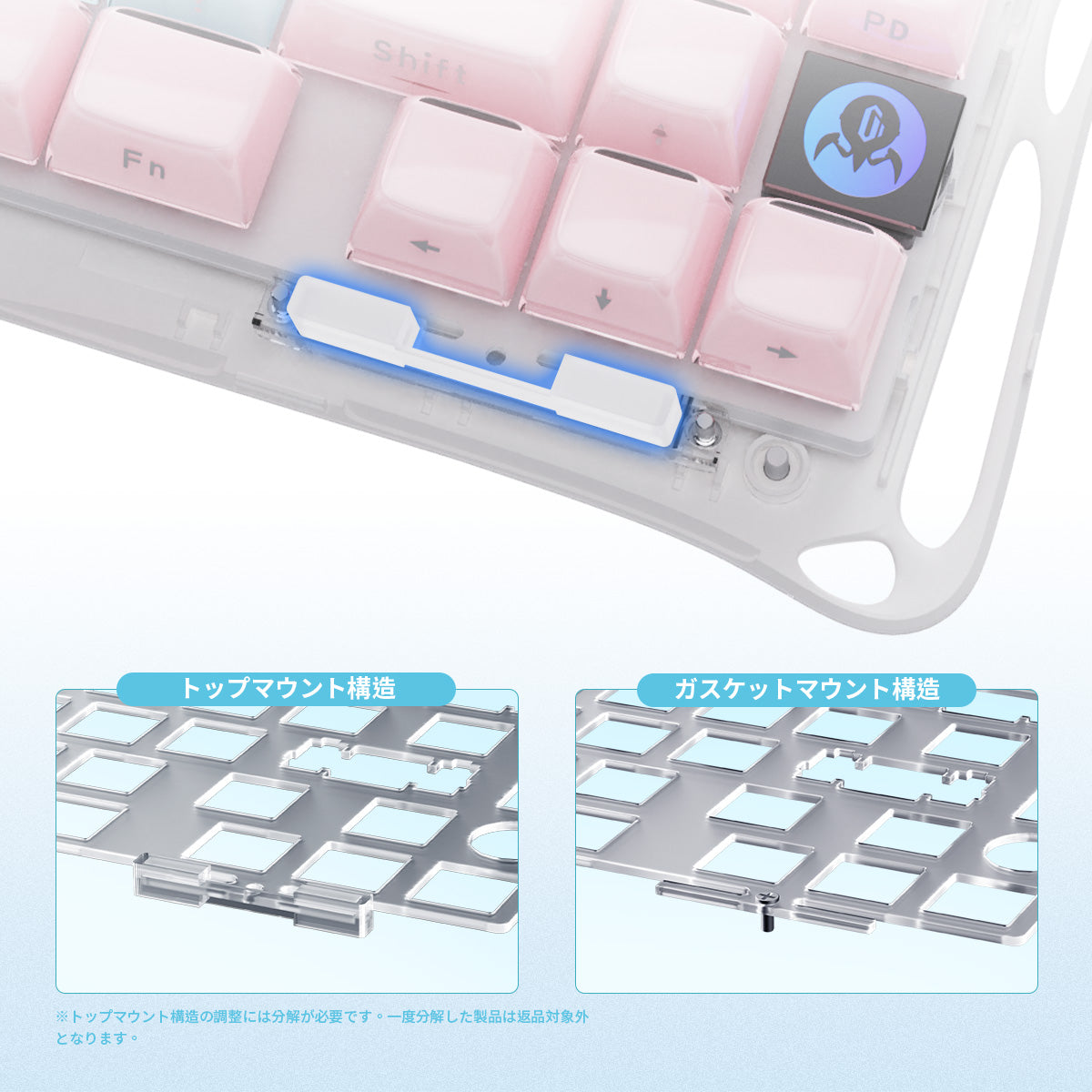 動画でも紹介されていた、ピンクとブルーのパステルカラーが可愛すぎるモデル! ふんわりと咲く花のような甘い配色は、ホワイトデスクやピンク中心のセットアップに相性抜群です。
