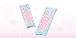 どちらも透明感のあるフレームと、パステルカラーのキーキャップが組み合わさって、置くだけで映えます!