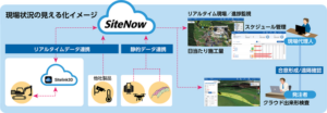『SiteNow』は、リアルタイム施工マネジメントシステム『Sitelink3D』と連携して取得するICT建機の施工履歴データに加え、スキャナー等で取得した点群データや各種IoTセンサーから得られる現場情報など、多様なデータをクラウド上で一元的に統合します。これにより、リアルタイムに現場全体の作業状況を把握し、工程の遅れや手戻りを未然に防ぐための速やかな意思決定を支援します。