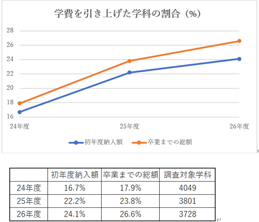 “入学時は安い”に要注意!私立大学で在学中に膨らむ学費負担が拡大― 学費ナビ、3年連続の学費実態調査で判明 ―