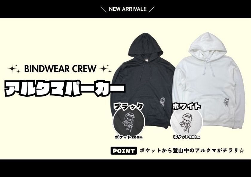 オリジナルグッズ販売サイト「BINDWEAR CREW」で長野県PRキャラクター「アルクマ」オリジナルパーカー新発売!