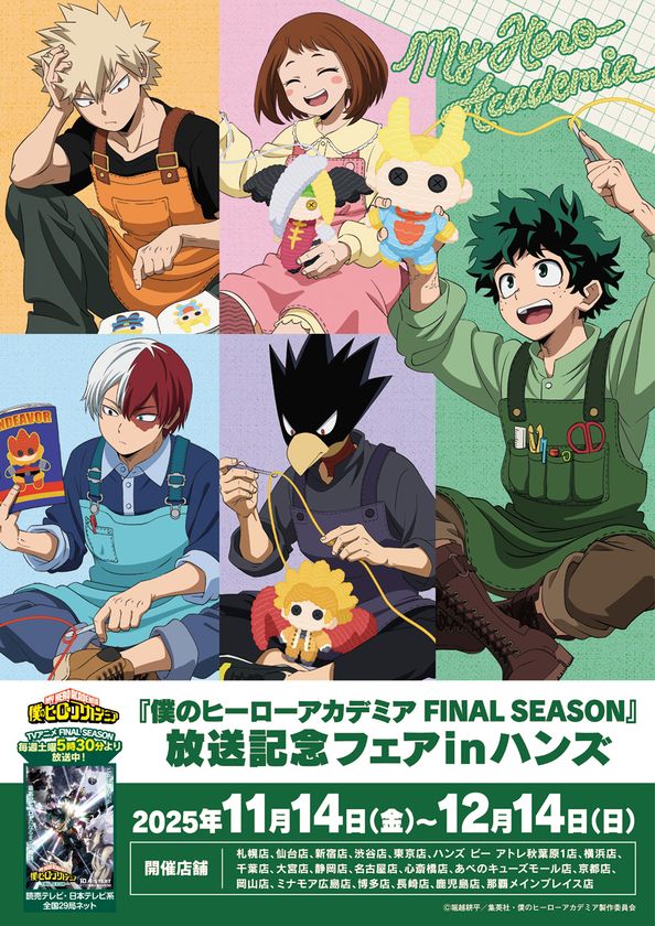TVアニメ『僕のヒーローアカデミア FINAL SEASON』の放送を記念したフェアが全国のハンズ・ハンズ ビー 計20店舗にて開催決定!2025年11月14日(金)よりスタート!