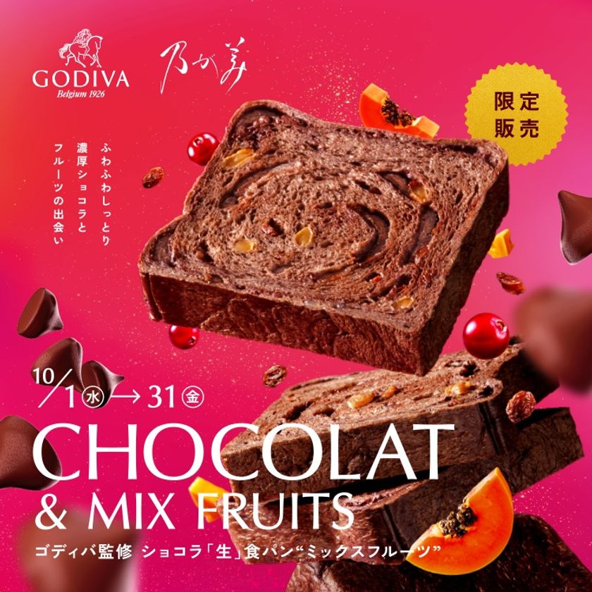 乃が美×ゴディバの特別コラボ!「ゴディバ監修 ショコラ「生」食パン“ミックスフルーツ”」と「ゴディバ監修チョコレートクリーム」が期間限定で2025年10月1日に新発売