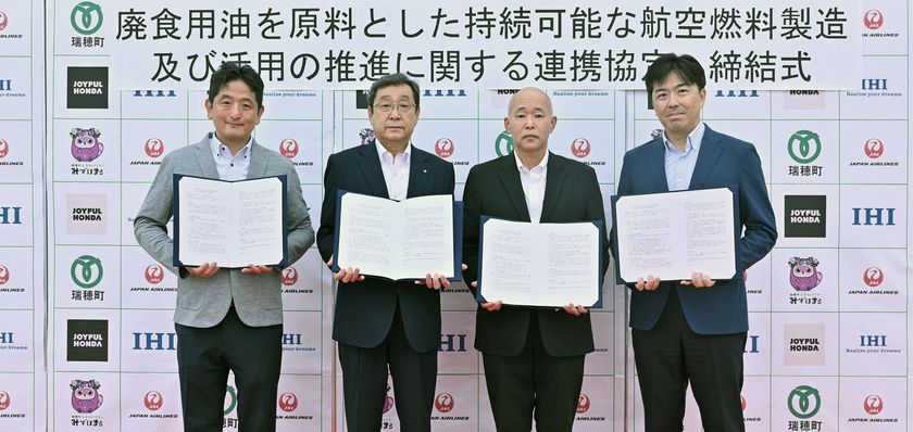 瑞穂町と4社、廃食用油を原料にした航空燃料製造へ進出